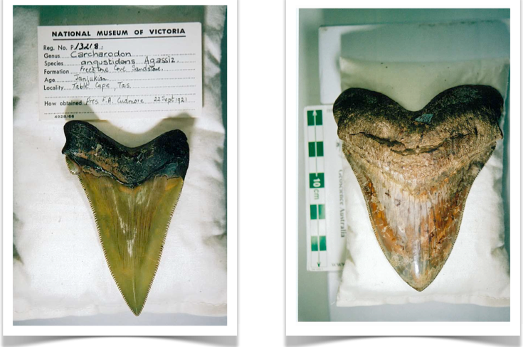 The difference between the Megalodon and the Carcharocles Angustidens in regard to tooth structure